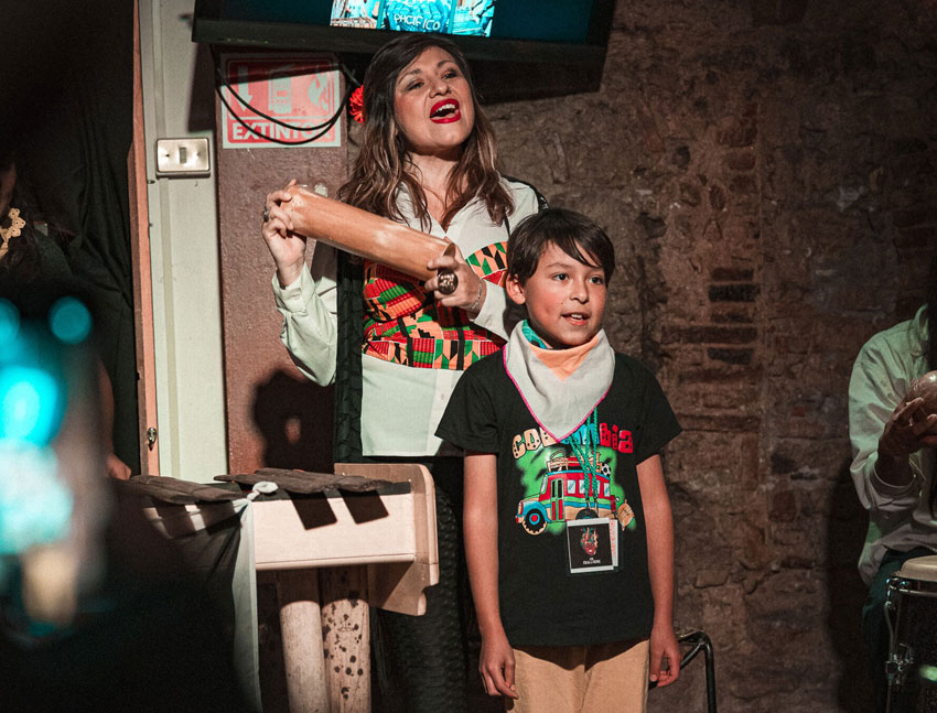 Desde una perspectiva escénica, el eje central radica en la performatividad del aprendizaje. Lucía Fernández es una intérprete mexicana que se aproxima a la marimba de chonta, instrumento profundamente arraigado en las tradiciones del Pacífico colombiano. Esta propuesta de narrativa no se cuenta únicamente con palabras, sino a través del ritmo, cuerpo y la ejecución musical, generando un acercamiento al conocimiento. La presencia de Ikal Alair Fernández introduce además una dimensión relevante, es el signo de continuidad, una “semilla” de trasmisión de esta tradición musical.